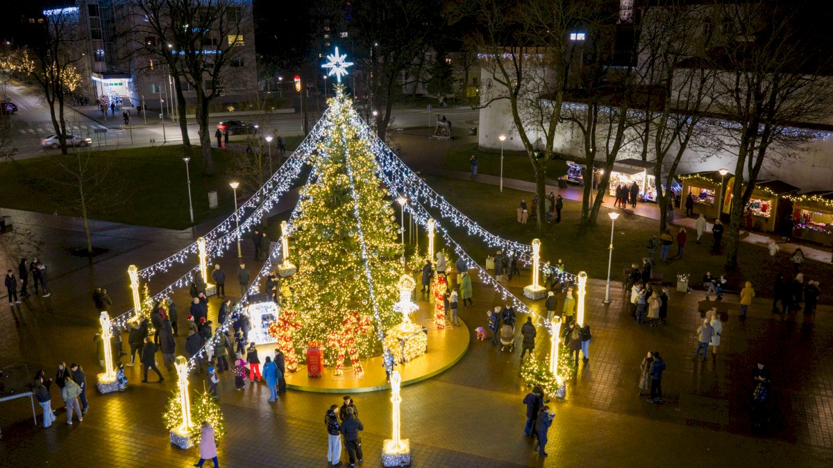 Tauragė skelbia švenčių pradžią: miesto širdyje suspindo klasika dvelkianti Kalėdų eglutė